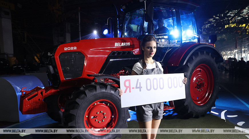 Сегодня в ОАО "МТЗ" состоялась презентация четырехмиллионного трактора BELARUS. На выпуск первого миллиона Минскому тракторному заводу потребовалось 22 года, второго - 12 лет, третьего - 11 лет. Между трехмиллионным и четырехмиллионным трактором прошло 27 лет. Юбилейный трактор отправится в Могилевскую область. Ключи от него получил тракторист-машинист Николай Даречкин, который работает в Белыничском сельскохозяйственном производственном кооперативе "Колхоз "Родина". Также в программе торжественного мероприятия - пробег тракторов BELARUS по проспектам столицы.-0-