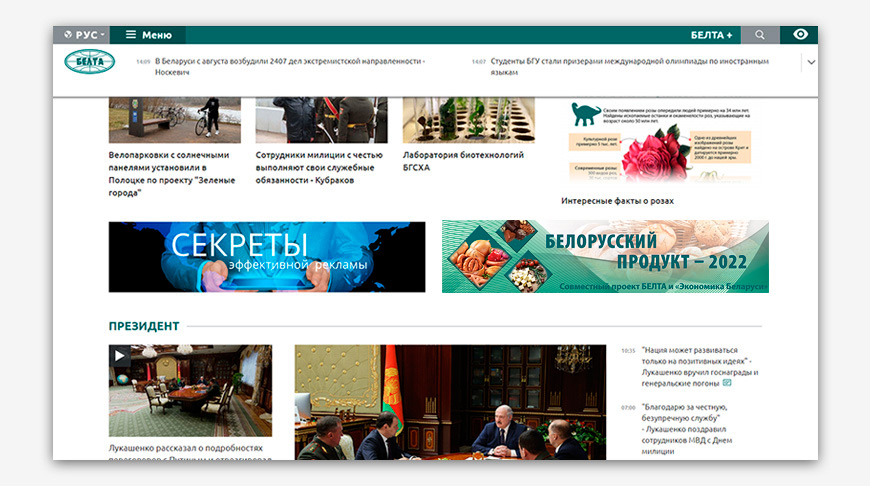 Информационный мультимедийный интернет-портал - крупнейший первоисточник новостей в Республике Беларусь: до 250 информационных материалов ежедневно; мультимедийные форматы (фото, видео, инфографика); шесть языковых версий.