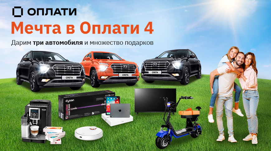 Ну и, пользуясь приложением Оплати™ , автоматически становишься участником серии рекламных игр "Мечта в Оплати", где можно получать радующие сердце и душу подарки – от айфона до машины или квартиры.