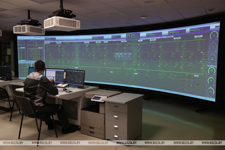 Нам удалось побывать и на центральном пульте управления. "Здесь выполняется контроль параметров и управление оборудованием комплектного распределительного устройства (КРУЭ 330 кВ), схемой выдачи мощности с энергоблоков, а также связь с энергосистемой Беларуси", - отметил дежурный начальник смены Анатолий Станилевич.