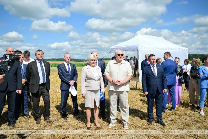Как сообщалось ранее, глава государства приезжал на сельхозпредприятие "Озерицкий-Агро" в Смолевичском районе на поле с озимым ячменем. Данная культура в урочище "Фрегат" была посеяна на площади 123 га. Урожайность - 70 ц/га, что значительно выше средней по стране.