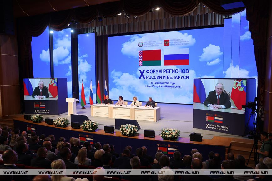 28 июня, Минск /Корр. БЕЛТА/. В Беларуси совместно с Россией реализуются импортозамещающие проекты на 80 млрд российских рублей. Об этом Президент России Владимир Путин заявил в своем приветствии участникам X Форума регионов России и Беларуси, передает корреспондент БЕЛТА.