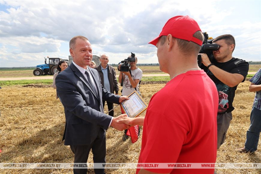 Сегодня Иван Крупко посетил ряд хозяйств Брестского района, где ознакомился с ходом жатвы. В ОАО "Остромечево" министр принял участие в церемонии чествования передовиков уборочной кампании. Благодарственные письма и ценные подарки вручили водителям и механизаторам-тысячникам. Среди них и Василий Вабищевич, который первым в районе намолотил 1 тыс. т зерна среди молодых комбайнеров.
