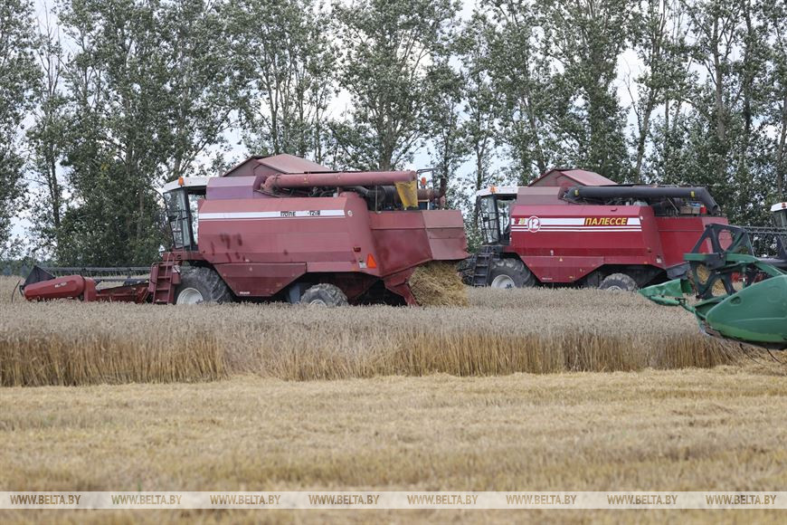 "На сегодня зерновые в республике убраны на 50,8% площадей. Намолочено 3,5 млн т зерна при урожайности 32 ц/га. В уборке участвуют 36 тыс. механизаторов. Поддерживаем готовность техники на уровне 97%, самая высокая в Брестской, Минской и Гродненской областях - 99%. Это дает возможность при хороших погодных условиях убирать в день 4-6% площадей. Если погода позволит ежедневно выходить комбайнам в поле, то Брестская область за 5-6 дней уборку может практически завершить. В целом по стране можно закончить уборочную кампанию за 12-13 погожих дней", - сказал министр.