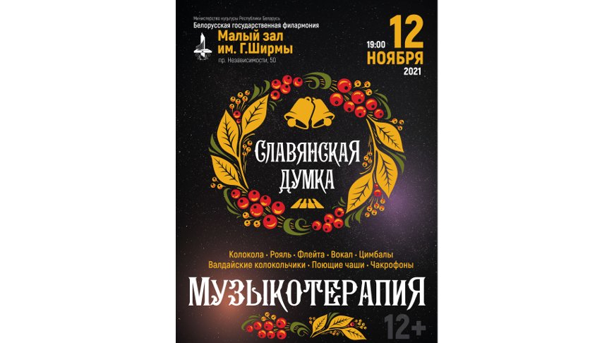 9 ноября, Минск /Корр. БЕЛТА/. Концертная программа "Музыкотерапия. Славянская думка" состоится 12 ноября на сцене малого зала имени Г.Ширмы Белорусской государственной филармонии, сообщили БЕЛТА в учреждении культуры.