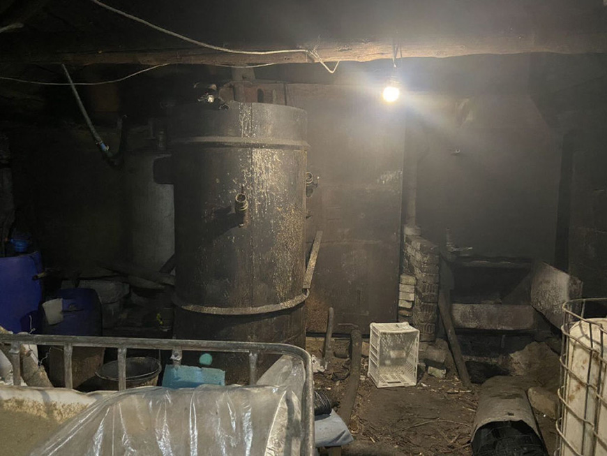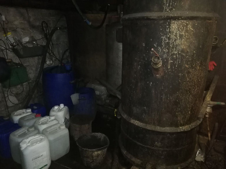 Хозяином предприятия оказался известный специалист в области подпольного самогоноварения, безработный 28-летний местный житель. "Данный адрес был знаком стражам порядка, в этом году отсюда дважды вывозили самогонный аппарат. В этот раз милиционеры в прямом смысле слова остановили работу подпольного цеха - владелец мини-завода и его рабочий попались с поличным. По итогу более 7 т самогонной браги было уничтожено, партия готового продукта изъята. Образцы спиртосодержащей жидкости направлены на экспертизу. Сам производственный агрегат демонтировали и конфисковали, правда, удалось это сделать не сразу", - отметили правоохранители.