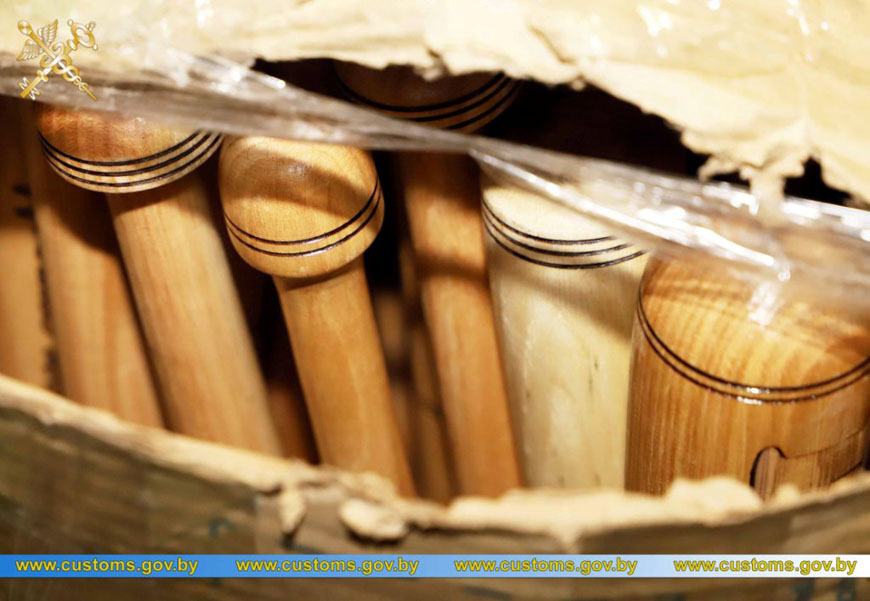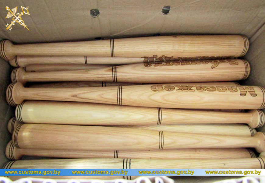 Грузовой автомобиль Mercedes со сборным грузом въезжал в Беларусь из Украины. Во время таможенного контроля инспекторы обратили внимание, что у деревянных бит есть признаки предметов, перемещение которых через границу может быть ограничено. В представленных водителем документах товар был заявлен как сувенирная продукция и следовал в адрес фирмы-получателя в Минский район.