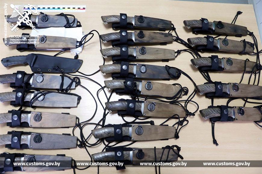Грузовой автомобиль Volvo ехал из Польши в Беларусь. Границу пересекал через пункт пропуска "Козловичи". В документах было указано, что водитель везет музыкальные инструменты, станки, одежду, бытовую технику, косметику и другие товары. Во время таможенного досмотра инспекторы обнаружили среди груза 21 охотничий нож. Этот товар ограничен к перемещению через таможенную границу ЕАЭС.