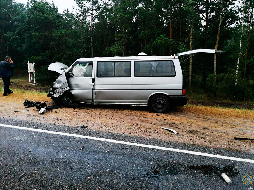 Авария произошла 18 августа вблизи агрогородка Глинка. В 17.46 в Столинский РОЧС от очевидца поступило сообщение о ДТП на 147-м км дороги Р6 Ивацевичи - Пинск - Столин. На месте происшествия выяснилось, что произошло лобовое столкновение легкового автомобиля "Дэу Нексия" и микроавтобуса "Фольксваген Транспортер".