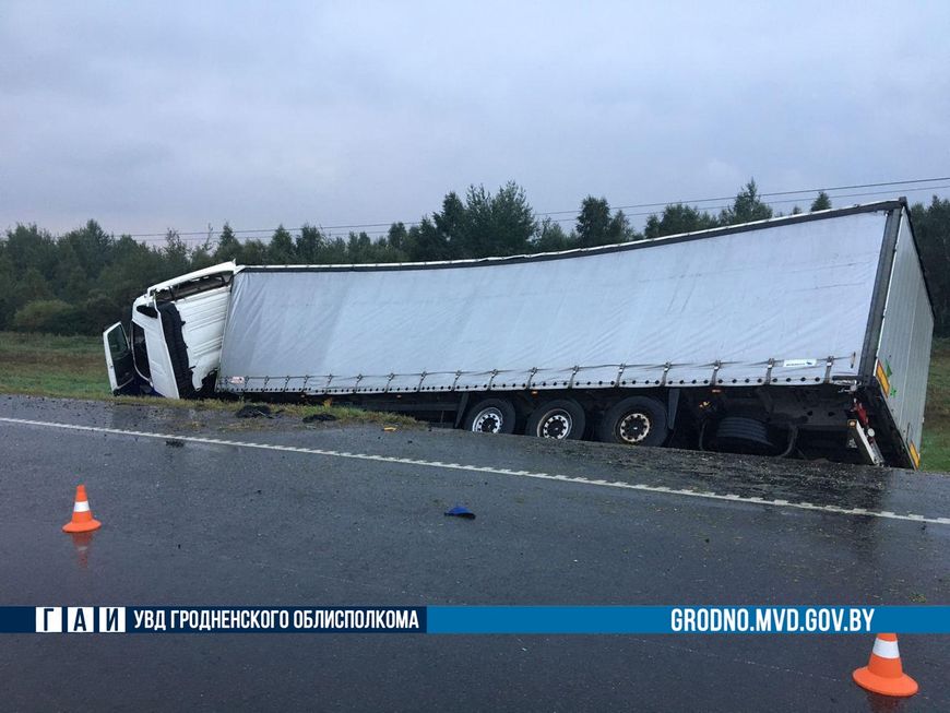 Авария произошла 16 сентября около десяти часов вечера на 156-м км трассы Минск-Гродно. Большегруз под управлением 52-летнего водителя из Польши двигался в крайней правой полосе дороги в сторону столицы. В какой-то момент автомобиль столкнулся с попутным трактором МТЗ с прицепом сена. От удара транспортные средства вылетели в кювет.