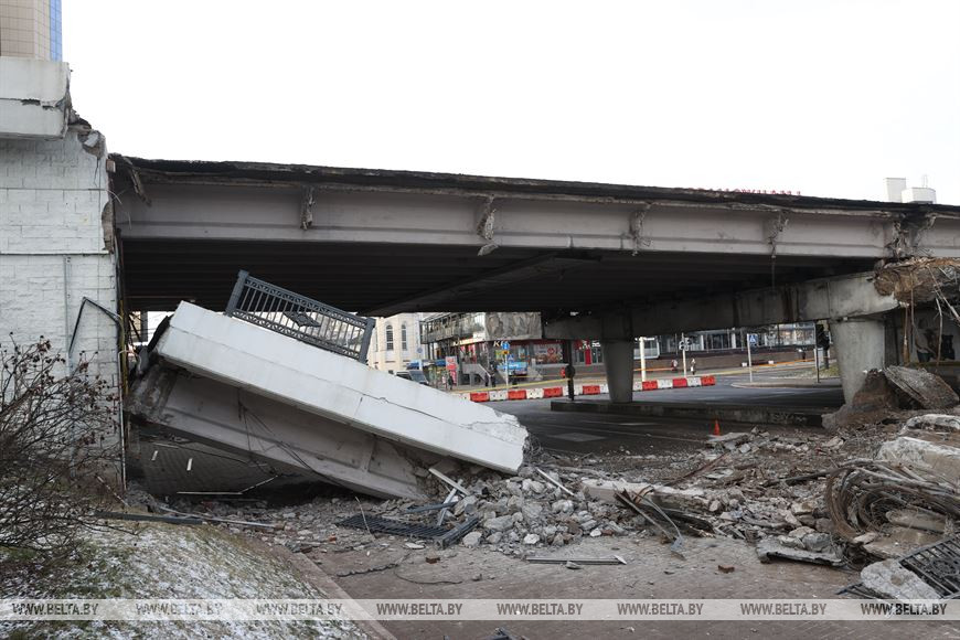 8 января, Минск /Корр. БЕЛТА/. Следователи работают на месте обрушения моста в Минске, сообщили БЕЛТА в Следственном комитете.