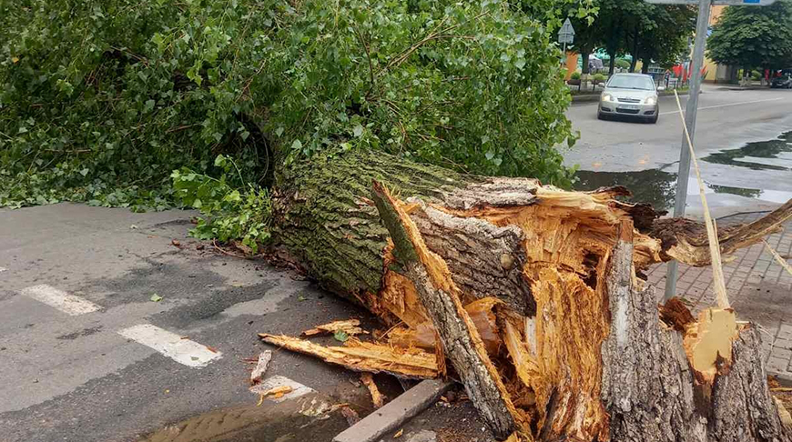 "19 июля из-за прохождения грозового фронта и шквалистого усиления ветра, достигавшего 15 м/с, в Бобруйске зафиксировано 10 случаев падения деревьев, в результате которых повреждены 12 автомобилей и шифер кровли частного жилого дома по ул.Коммунистической", - отметили в МЧС.