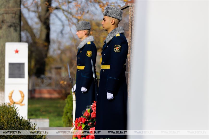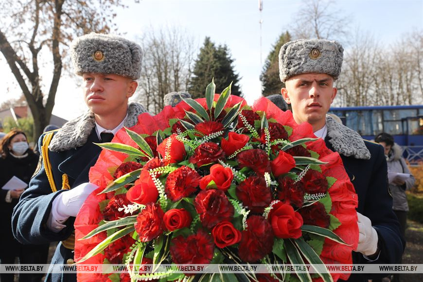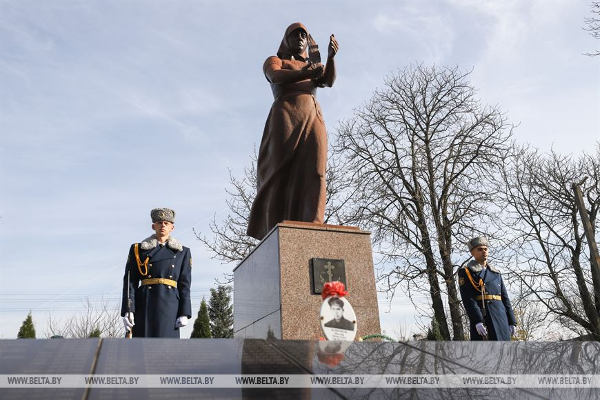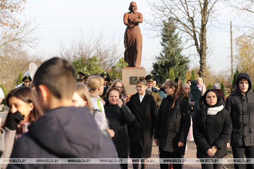 Церемония состоялась в агрогородке Чернавчицы, у братской могилы, где установлен монумент "Скорбящая мать". Здесь покоится прах более 500 защитников Отечества - воинов Красной армии, партизан и мирных жителей, погибших в годы Великой Отечественной войны. Сюда же подзахоронили останки еще семи жертв войны - неизвестного красноармейца и шести членов одной семьи, расстрелянных за связь с партизанами.