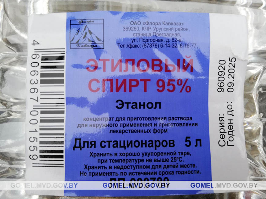У оперативников была информация, что на территории домовладения пенсионерки могла храниться спиртосодержащая жидкость. Осмотр санкционировала прокуратура Гомеля. В доме правоохранители обнаружили семь коробок, в которых находились 27 полимерных емкостей по 5 л каждая. "На этикетках значилось: этиловый спирт 95%. Далее шло разъяснение: концентрат для приготовления раствора для наружного применения и приготовления лекарственных форм. Для стационаров", - уточнили в УВД.