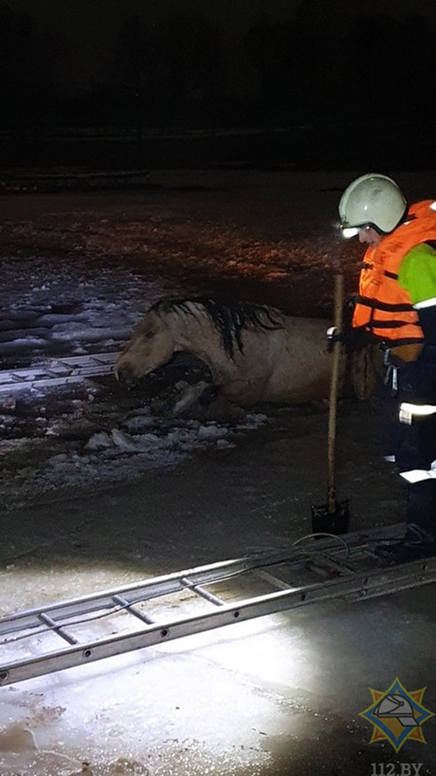 "26 марта в 22.53 спасателям поступило сообщение о том, что необходима помощь в извлечении из воды двух лошадей в Дзержинском районе. Когда подразделения МЧС прибыли к месту вызова, было установлено, что на водоеме вблизи деревни Наквасы под лед в 5 м от берега провалились две лошади, самостоятельно выбраться не могут", - рассказали в пресс-службе.