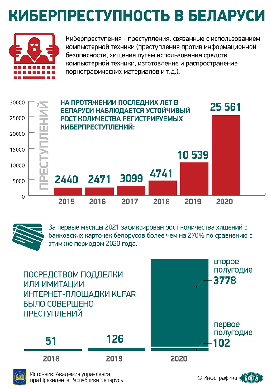 "С начала года на территории Гродненской области зафиксировано около 1100 киберпреступлений, что на 400 меньше по сравнению с аналогичным периодом 2020 года. Таким образом, уменьшается статистический прирост преступлений - это результат широкомасштабной профилактической работы и повышения уровня подготовки правоохранителей, задействованных в сфере высоких технологий. 115 человек привлечены к ответственности за совершение противоправных действий в IT-сфере, преимущественно те, кто совершил серию преступлений на территории Принеманского региона", - рассказали в УВД.