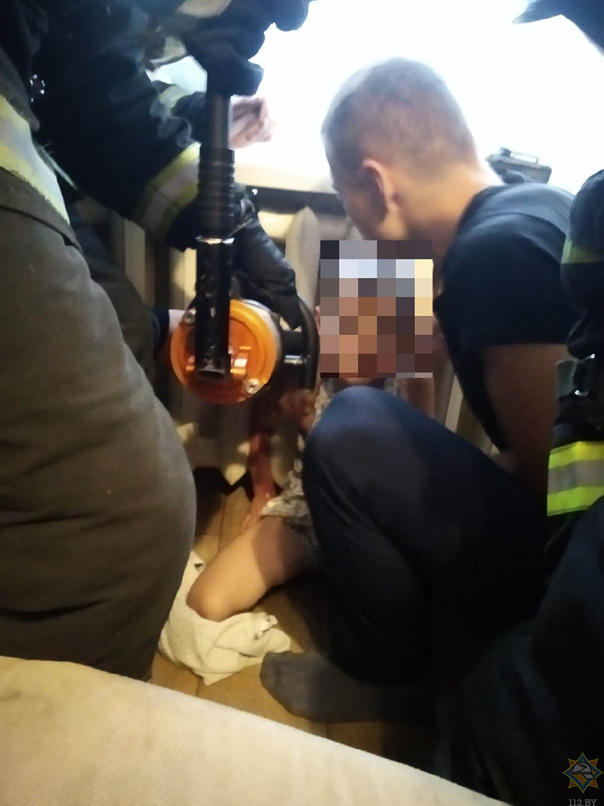 Похожая ситуация произошла в Витебске. Там у ребенка в батарее застряла нога. Спасатели, используя подручные средства (растительное масло), помогли вытащить ногу.-0-