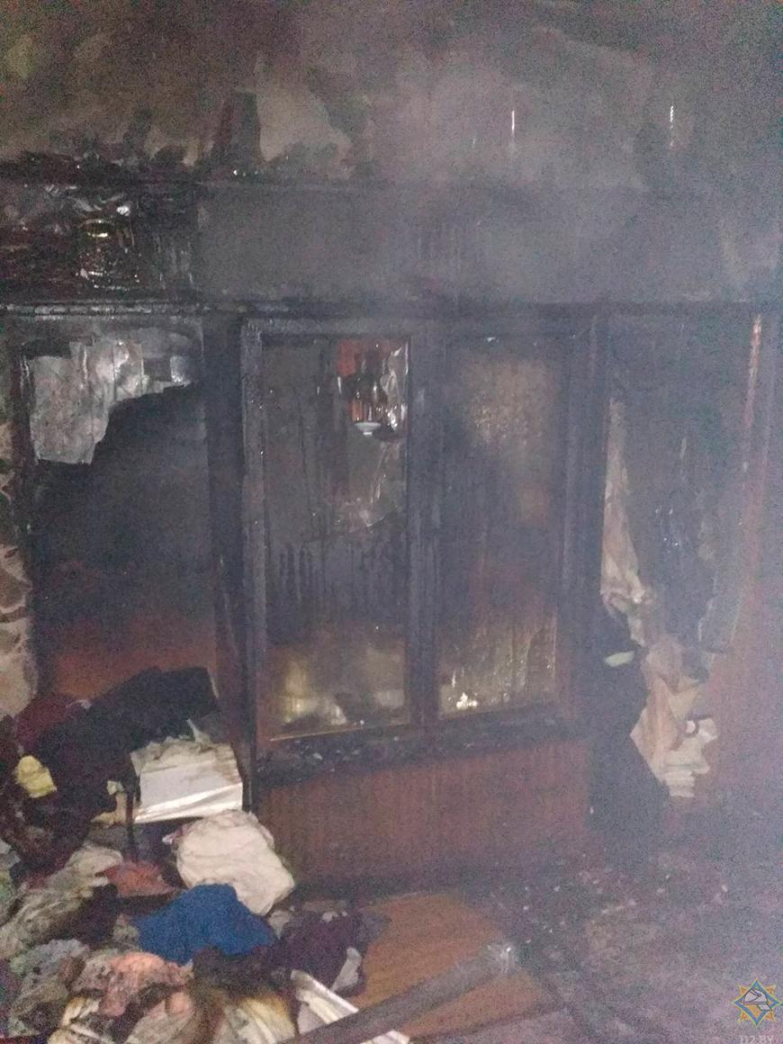 Пожар ликвидирован спасателями. В результате повреждено имущество в жилой комнате, закопчена квартира.