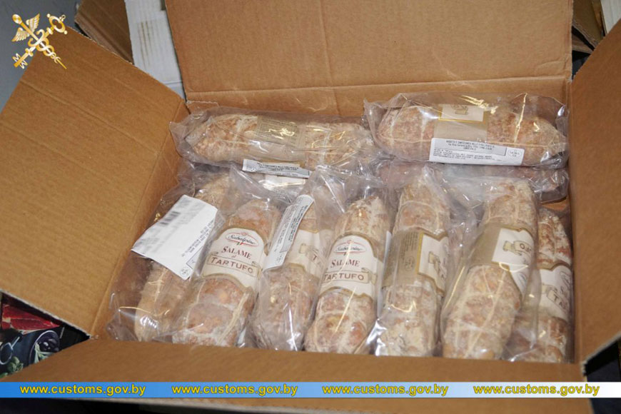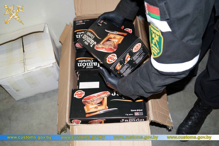 Инцидент произошел в пункте пропуска "Козловичи". Согласно представленным документам, автопоезд, который следовал из Дании в Россию, перевозил составляющие технологического оборудования для свиноводства. Однако во время операций таможенного контроля инспекторы установили, что помимо заявленного товара в грузовом отсеке находилось около 2 т сыра и хамона иностранного производства в ассортименте.
