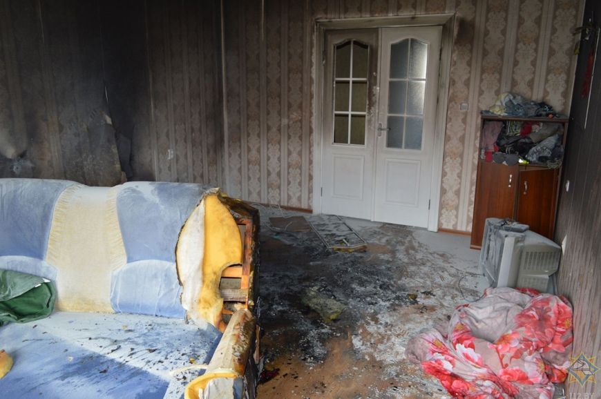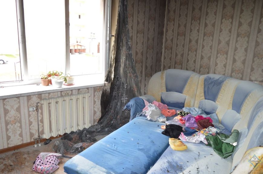 Огнем уничтожена тумбочка, поврежден диван, закопчены стены и потолок в комнате. Причина пожара устанавливается. Среди наиболее вероятных версий - детская шалость со спичками.-0-
