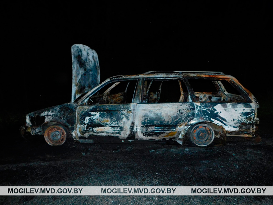 Ночью 29 мая в оперативно-дежурную службу Дрибинского РОВД поступила информация от граждан: на обочине автодороги вблизи деревни Робцы горит автомобиль. На место происшествия выехала следственно-оперативная группа.