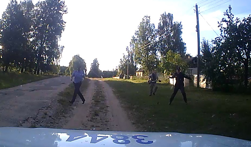 Согласно материалам уголовного дела, 5 августа 2020 года в правоохранительные органы поступила информация от ребенка из деревни Витуничи Докшицкого района о том, что бабушку бьет ее сожитель. На семейный скандал незамедлительно выехали милиционеры. Прибыв на место, они подошли ко двору дома, где находился 43-летний местный житель. Тот проигнорировал законные требования правоохранителей проследовать в служебный автомобиль для разбирательства. Мужчина завел бензотриммер, добавил обороты двигателя и пошел на милиционеров. Он грозился причинить правоохранителям телесные повреждения, бегал за ними с заведенным бензотриммером, угрожал убить их. Также он повредил лакокрасочное покрытие служебного автомобиля.