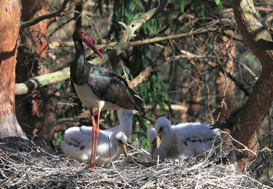 В отличие от своих ближайших родственников - белых аистов, которые привыкли к соседству с человеком, черные предпочитают селиться в глухих лесах и вблизи водоемов.