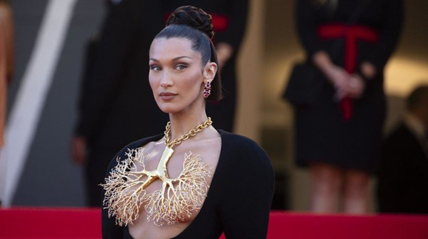 В список самых запоминающихся платьев не только Каннского кинофестиваля - 2021, но и в историю красных ковровых дорожек определенно войдет Белла Хадид в кутюрном творении Schiaparelli. На премьере фильма "Три этажа" супермодель затмила абсолютно всех. На ступенях Дворца фестивалей она появилась настолько величественной, будто только что выиграла главный трофей - в платье авторства талантливого художника-сюрреалиста Даниела Розберри. Этот образ был представлен всего неделей ранее на Недели высокой моды в Париже и, действительно, достоин громких и продолжительных оваций. Речь идет про черное классическое платье-футляр из плотной шерсти с декольте-гиперболой. Огромный вырез обнажает грудь модели, которую, в свою очередь, прикрывает фантазийное украшение - колье на массивной цепи, напоминающее бронхи, опущенные в золото. Это прямая цитата нашего времени: в пандемию легкие занимают все внимание и становятся на вес золота… Метафорично и провокационно!