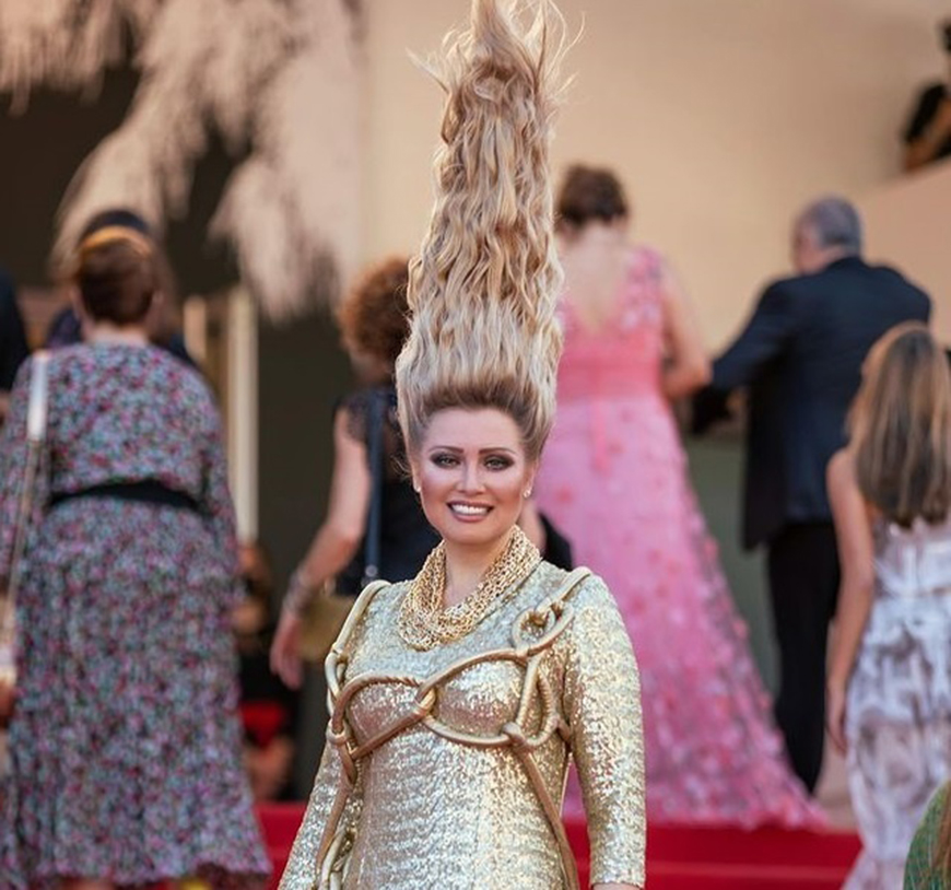Из российских знаменитостей традиционно выделилась писательница Лена Ленина. У нее есть привычка - ежегодно впечатлять гостей кинофестиваля. В этот раз она с ног до головы сияла золотом, наряды украшали мерцающие "улитки" и нечто, напоминающее растянутый шланг. А волосы были уложены так высоко, что звезда еле уместилась в авто.
