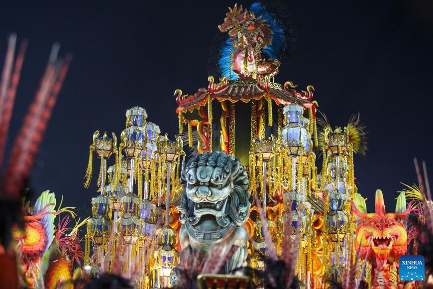 22 февраля, Рио-де-Жанейро /БЕЛТА - СИНЬХУА/. Яркое карнавальное шествие прошло на Самбадроме в Рио-де-Жанейро.
