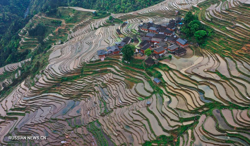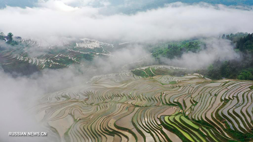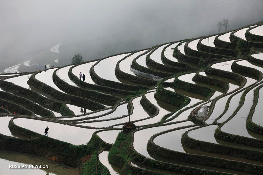 22 апреля, Гуйчжоу /БЕЛТА - СИНЬХУА/. Живописные виды террасных полей в провинции Гуйчжоу, Юго-Западный Китай.-0-