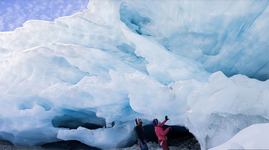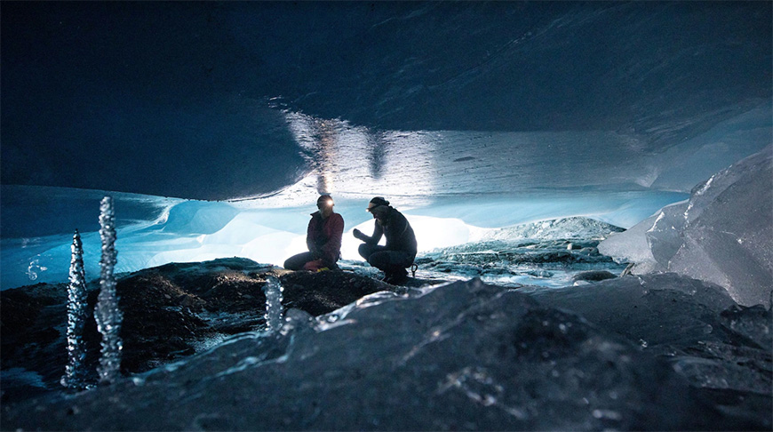 Пещеры синего подземного мира свидетельствуют о том, что ледники тают из-за изменения климата быстрее, чем ожидалось. Ученые стремятся узнать причину.-0-