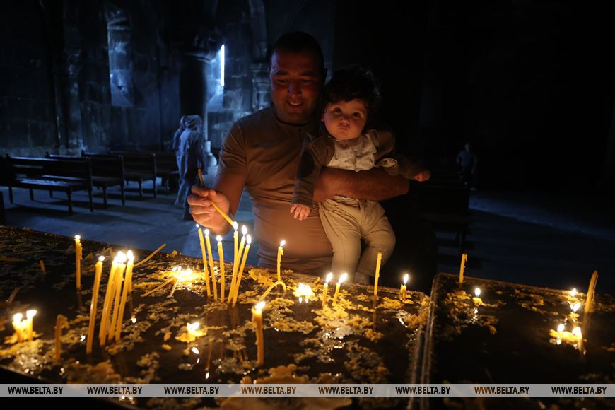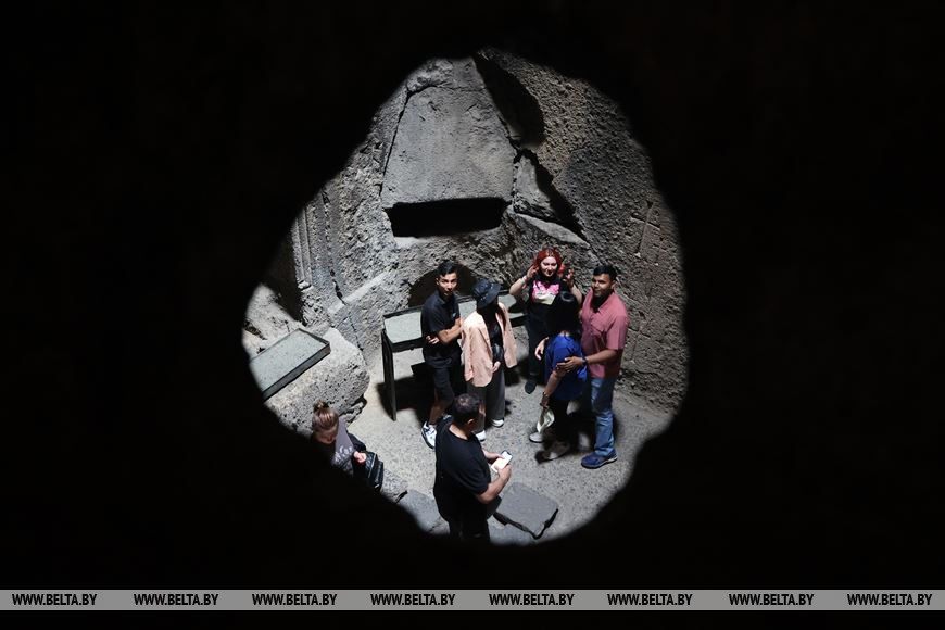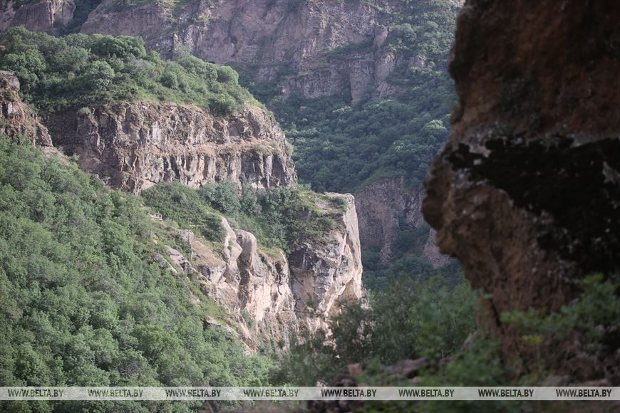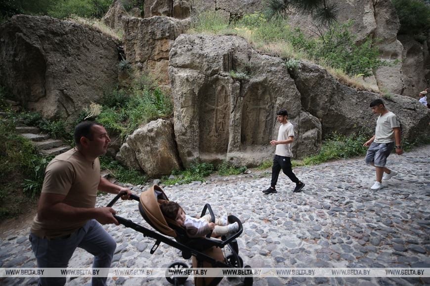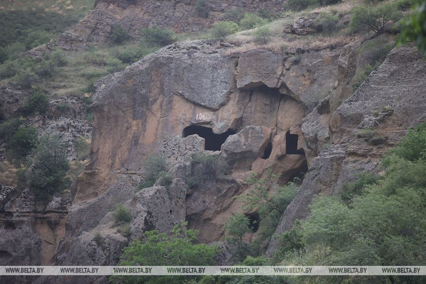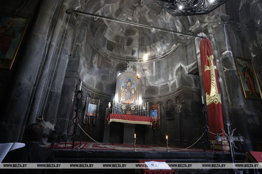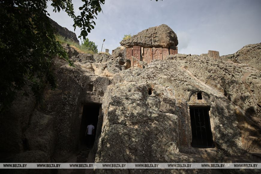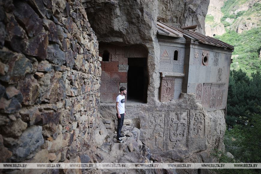 11 сентября, Минск /Корр. БЕЛТА/. Монастырский комплекс Гегард - памятник раннего средневекового зодчества Армении. Монастырь был основан (предположительно) в IV веке Первым Католикосом Армении - Григорием Просветителем, и первоначально назывался Айриванк, то есть "пещерный монастырь". Глубокое скалистое горное ущелье Гегард в месте расположения комплекса покрыто естественными гротами и пещерами, служившими в древности кельями монастыря. Монастырский комплекс частично вырублен в скальном массиве.-0-