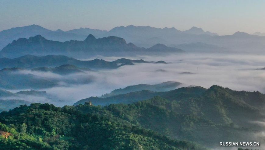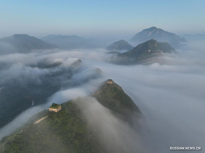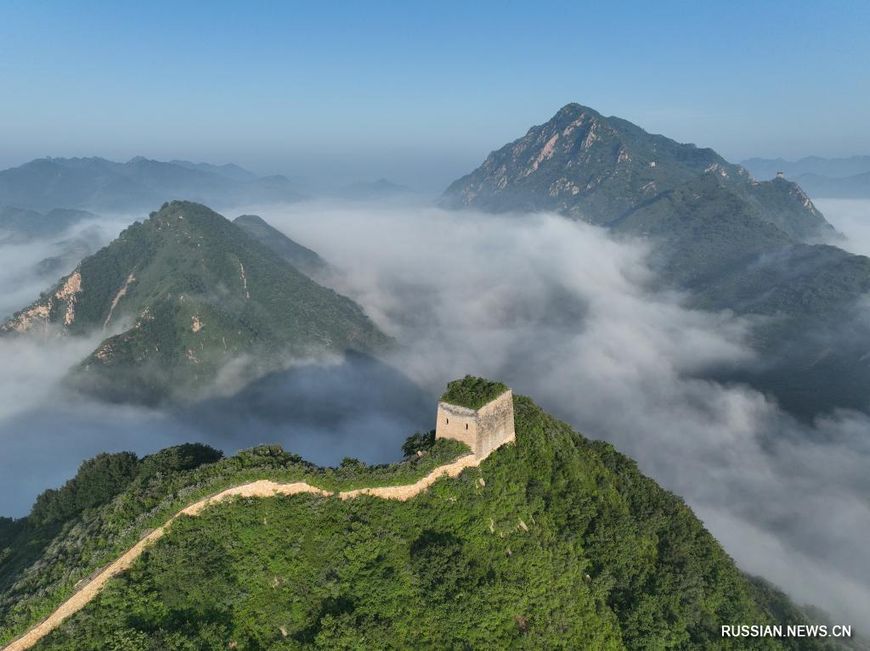 13 июля, Хэбэй /БЕЛТА - СИНЬХУА/. Море облаков над Великой Китайской стеной в провинции Хэбэй на севере Китая.-0-