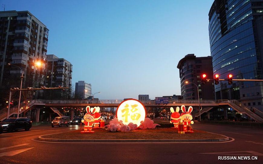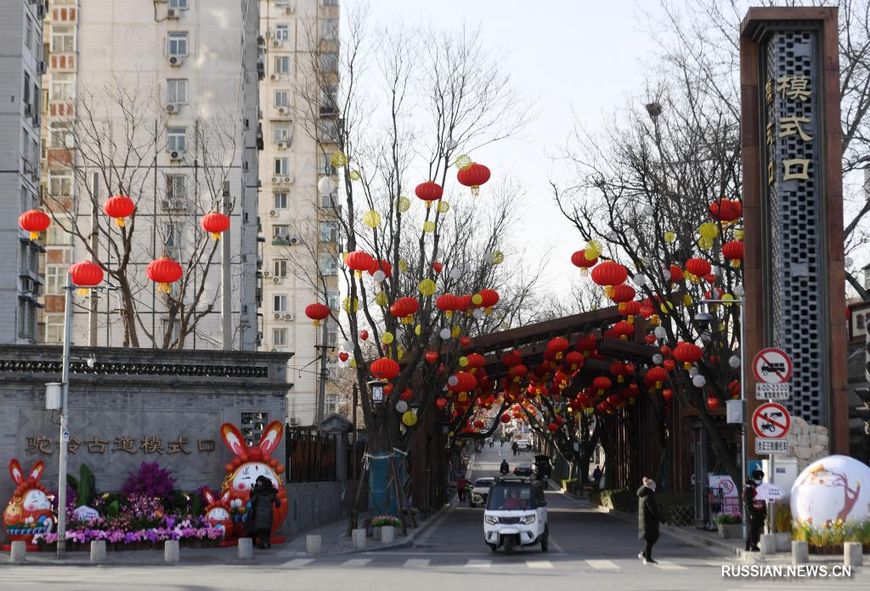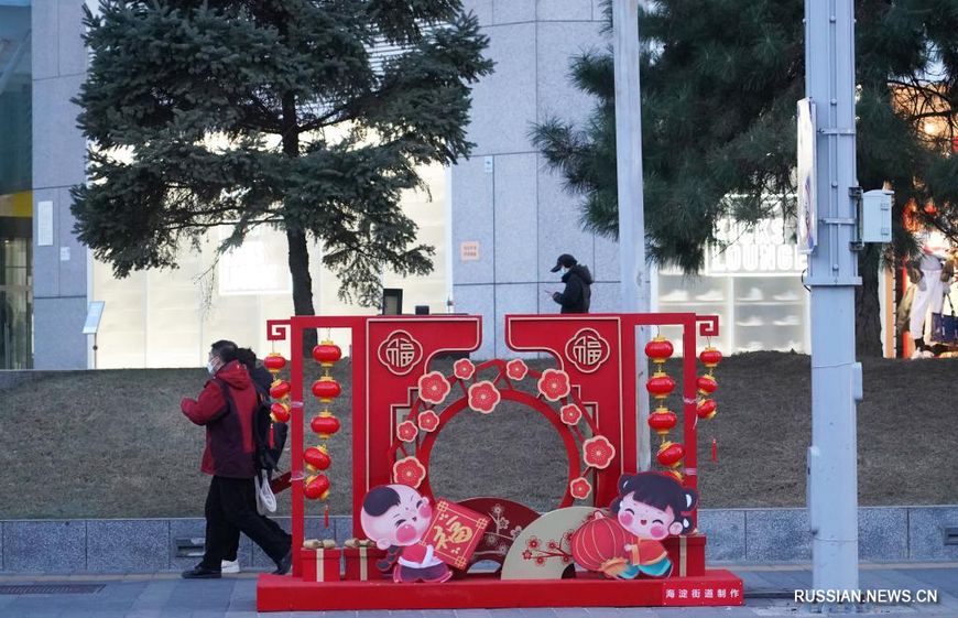 18 января, Пекин /БЕЛТА - СИНЬХУА/. С приближением праздника Весны (Чуньцзе, традиционный китайский Новый год по лунному календарю) на улицах Пекина расставили и развесили новогодние украшения.-0-