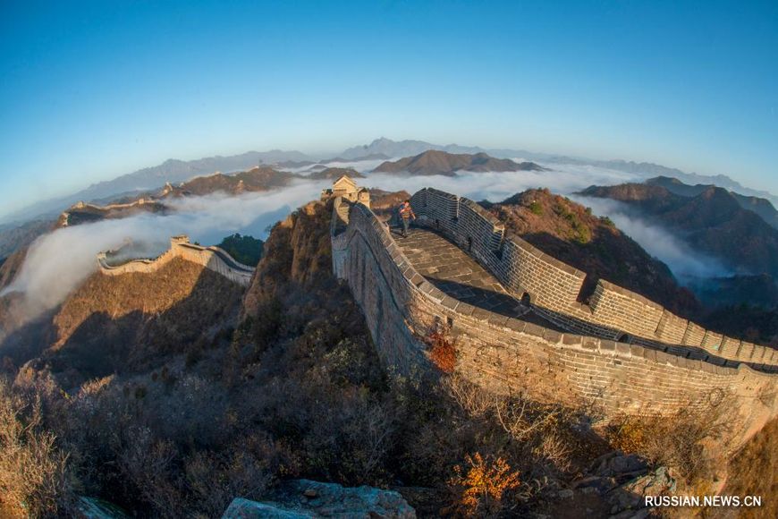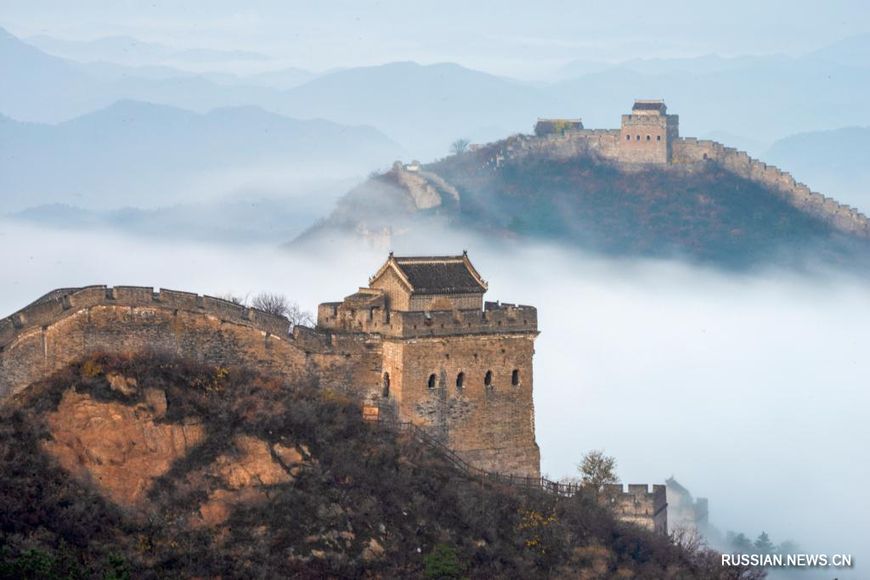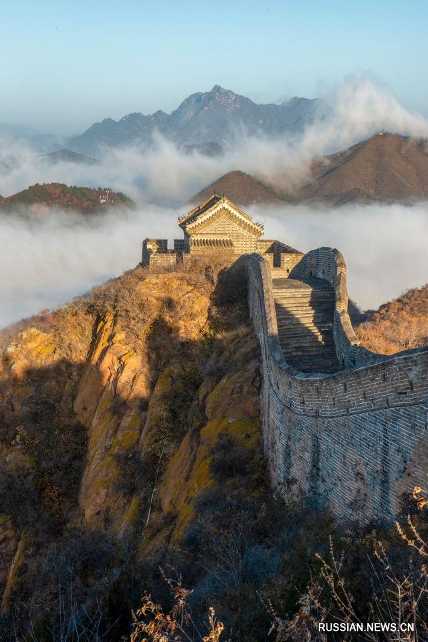 1 ноября, Чэндэ /БЕЛТА - СИНЬХУА/. Облака окутали участок Цзиньшаньлин Великой Китайской стены, который находится на территории уезда Луаньпин провинции Хэбэй на севере Китая.-0-