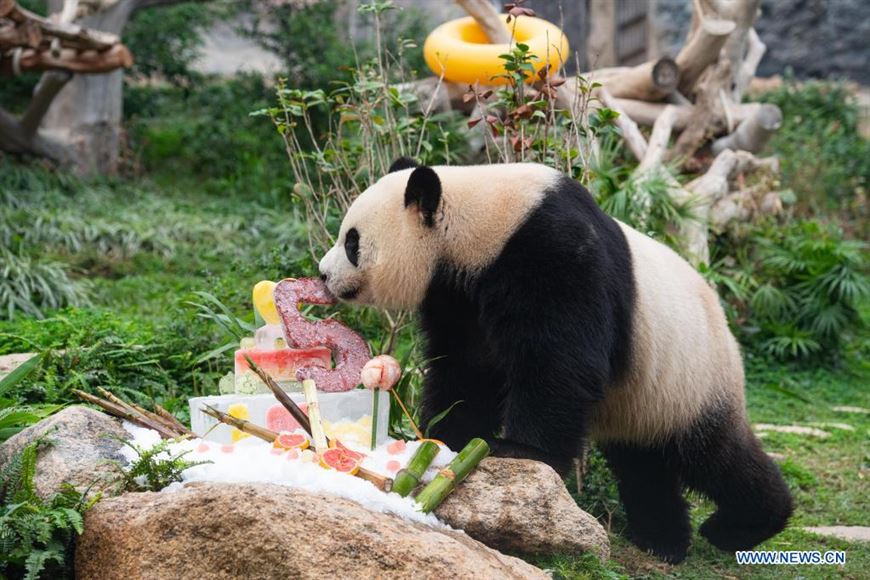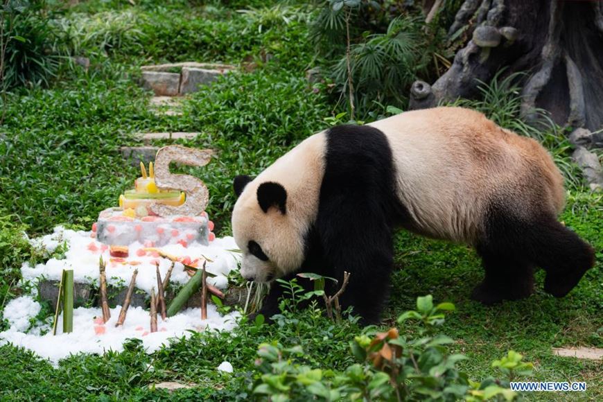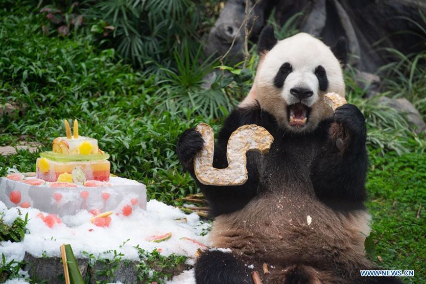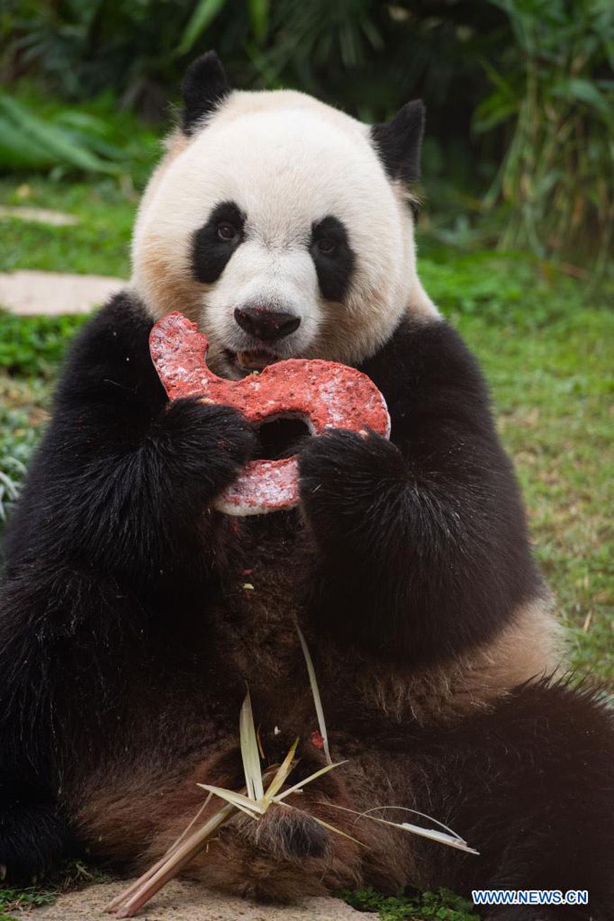 29 июня, Макао /БЕЛТА Синьхуа/. Панды-близнецы из Макао, братья Цзяньцзянь и Кангканг, отметили праздничным "тортом" свой пятый день рождения.-0-