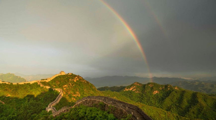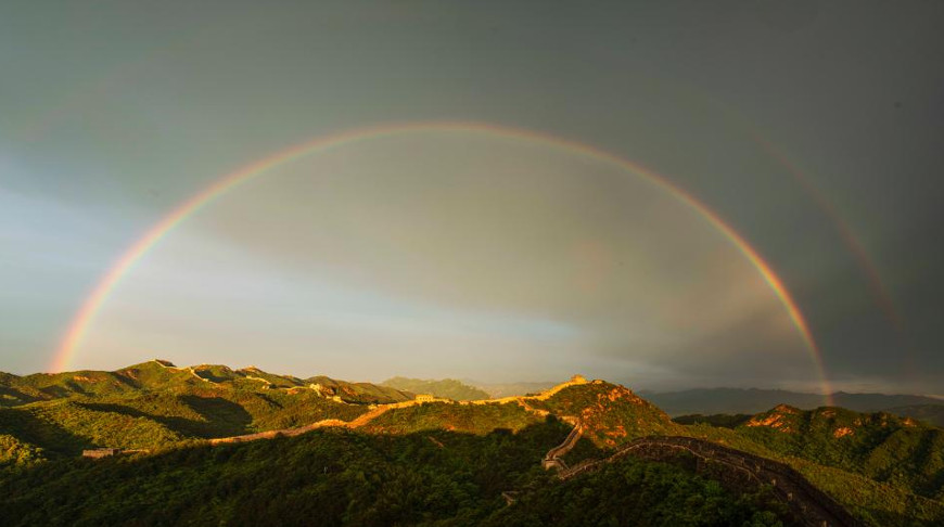 16 июня, Чэндэ /БЕЛТА - СИНЬХУА/. Живописная радуга озарила небо над Великой Китайской стеной на территории уезда Луаньпин города Чэндэ.-0-