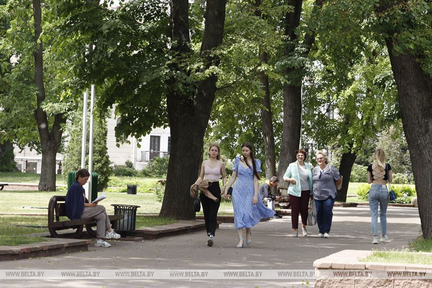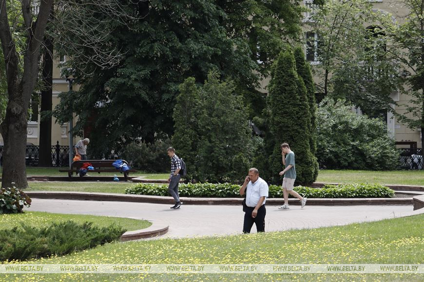 1 июня, Минск /Корр. БЕЛТА/. Скверы Минска - зеленые оазисы в городских джунглях. Жители и гости столицы могут отдохнуть там в тени деревьев в жаркую летнюю погоду.-0-