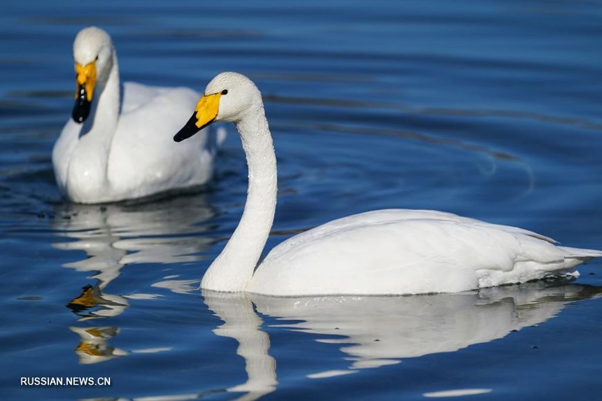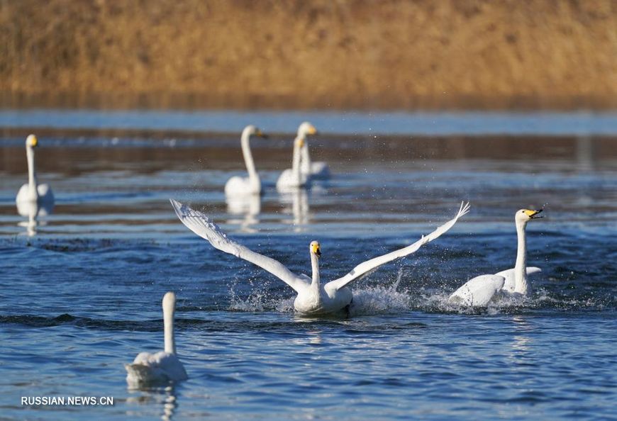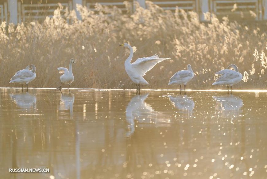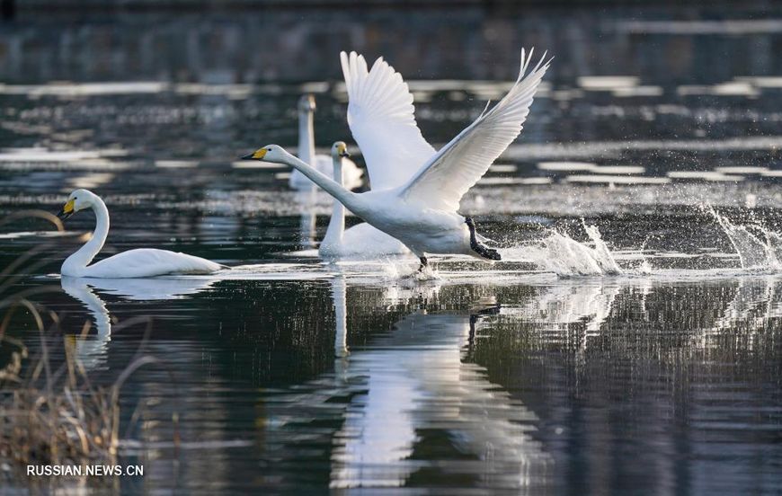 10 декабря, Минск /Корр. БЕЛТА/. На днях стая белых лебедей была замечена в районе Миюнь в Пекине. Они плавали и искали пищу под водой, словно танцуя в окружении зимнего города.-0-