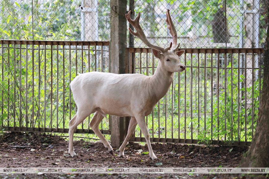 Лань-альбинос Пломбир из Могилевского зоосада в очередной раз стал отцом. Три недели назад у одной из двух его жен родилась дочка. Это второй ребенок Пломбира, который окрасом пошел в папу. Обычно лани рыжие с пятнами, появление на свет белого детеныша случается крайне редко.-0-