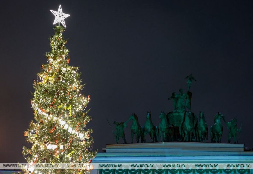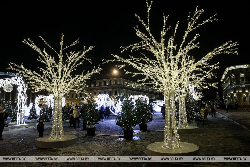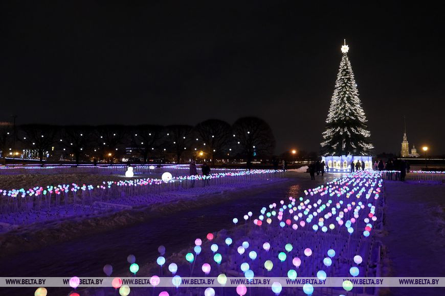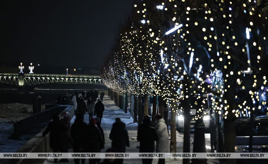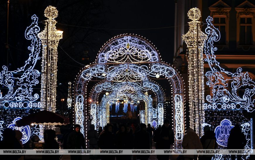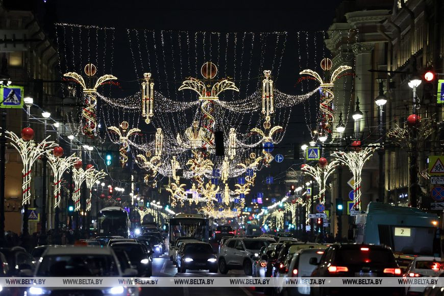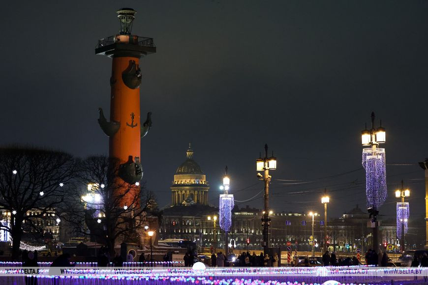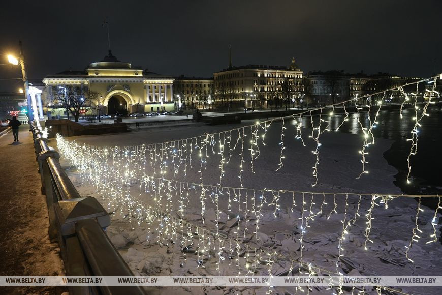 25 декабря, Минск /Корр. БЕЛТА/. Вечерний праздничный Санкт-Петербург сверкает новогодними огнями и манит на прогулку горожан и приезжих.-0-