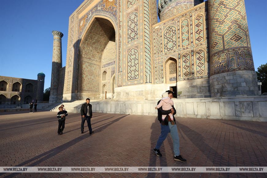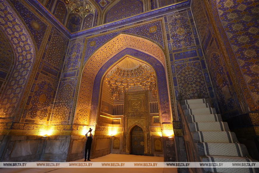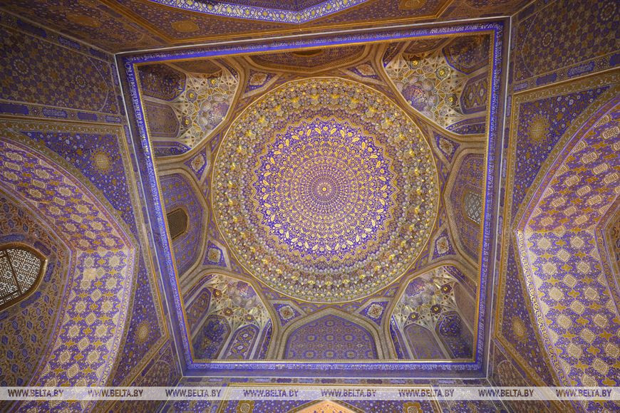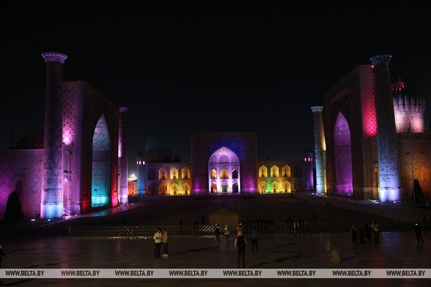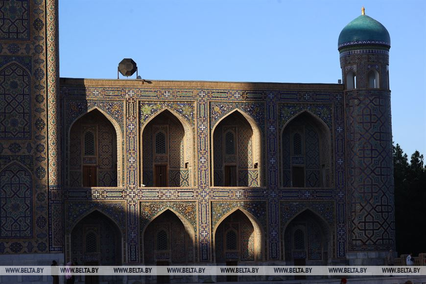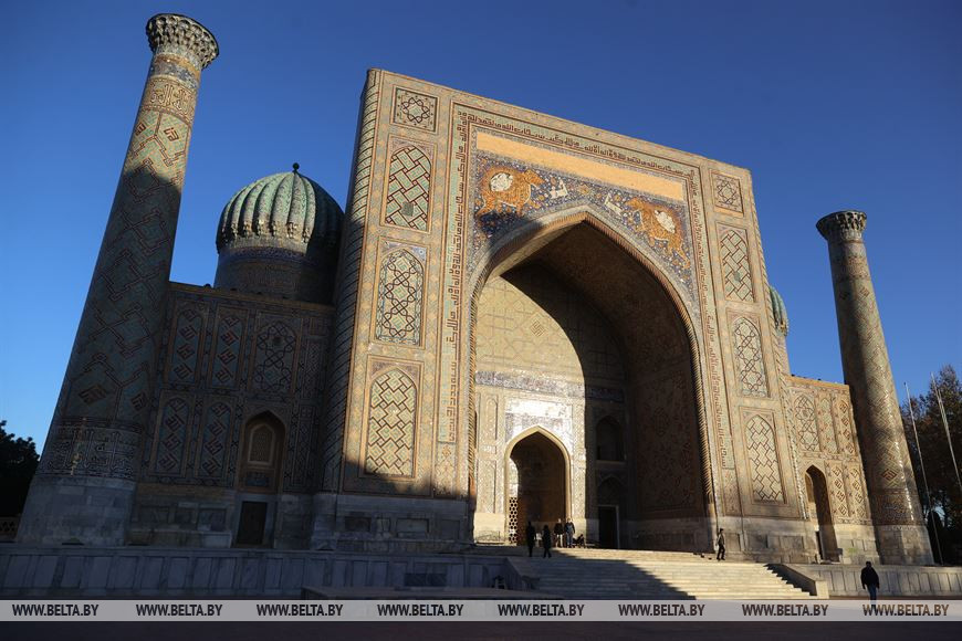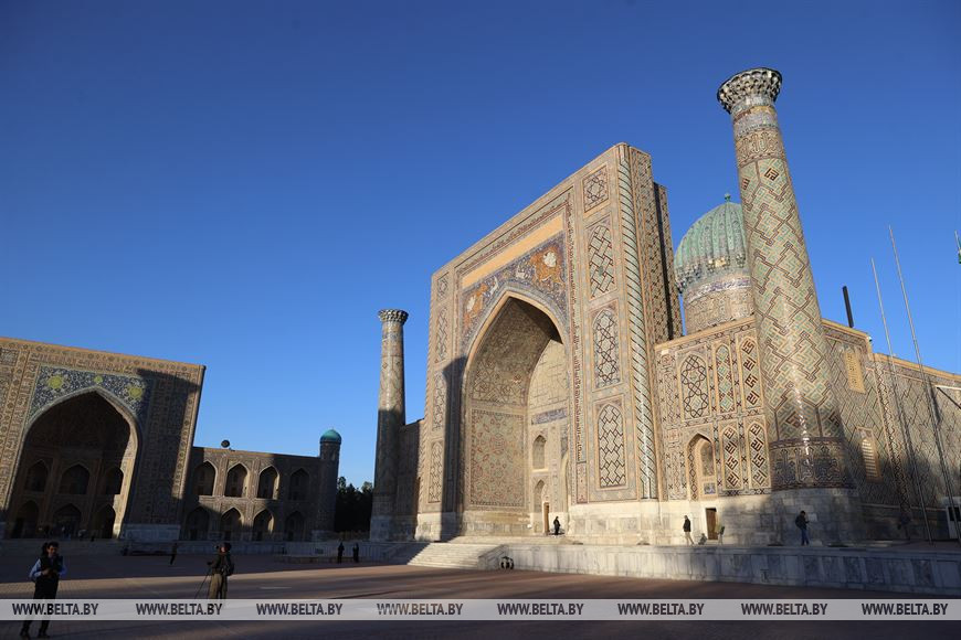 5 декабря, Самарканд /Корр. БЕЛТА/. В центре старого Самарканда расположилась площадь Регистан 15-17 века, которую часто называют жемчужиной Центральной Азии. Одна из великолепнейших площадей мира является местом притяжения туристов со всего света. Ансамбль из величественных зданий, уникальных образцов архитектуры и градостроительства, украшает площадь с трех сторон: медресе Тилля-Кари, слева от площади построено медресе Улугбека, а справа - медресе Шердор. Все три строения имеют свой уникальный декор, возводились они двумя правителями в разное время.