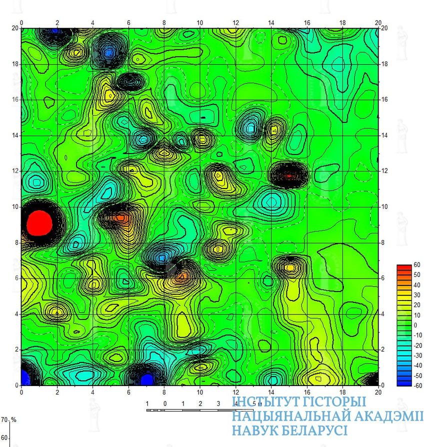 "Можно утверждать, что геофизические методы показали свою эффективность. Учитывая историю Кревского городища, можно предположить, что на месте обнаруженной аномалии существовали следы либо Первой мировой войны, либо более древних сооружений. Действительно, в верхних слоях были обнаружены остатки разрушенной землянки. Глубже пласта войны был обнаружен фрагмент кладки средневекового здания. Пол здания, существовавшего в конце X - первой половине XI века на Кревском городище, был вымощен камнем. В целом жизнь на городище как в административном и торгово-экономическом центре тогдашнего Крева продолжалась до первой половины XIV века, до строительства каменного Кревского замка. Магнитная разведка показала нам в качестве аномалии скопление камней на глубине 1,5 м", - рассказали в Институте истории.