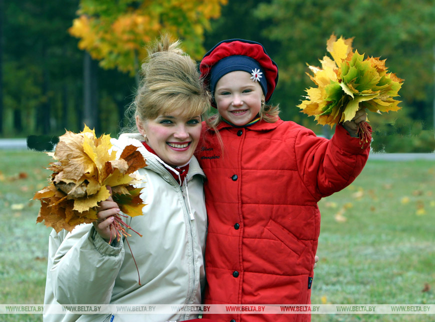 2 октября 2003 года. Воспитатель детского сада №64 Гомеля Наталия Просвирина с дочерью Татьяной на прогулке в осеннем парке