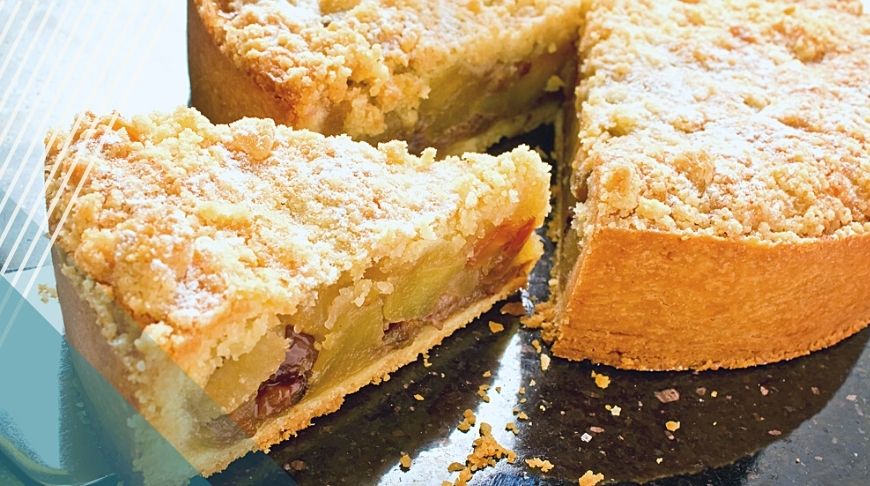 Приготовьте топпинг: в средней миске смешайте растопленное сливочное масло, муку, сахар, корицу и щепотку соли. Покройте получившейся смесью яблочный слой.
