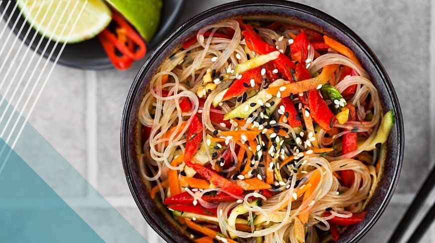 Отварите рисовую или яичную лапшу, следуя инструкциям на упаковке. Слейте воду.