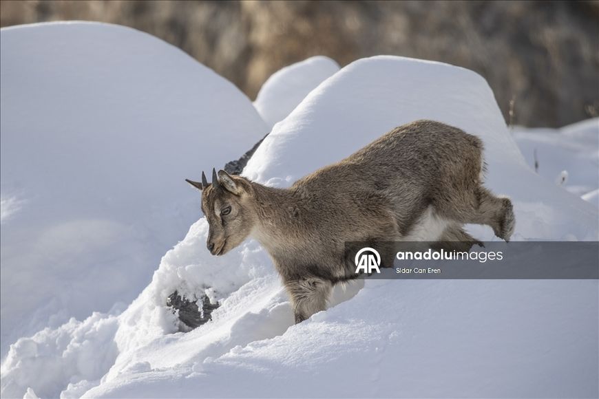 15 января, Минск /Корр. БЕЛТА/.Дикие козлы, находящиеся под угрозой исчезновения, в зимний период