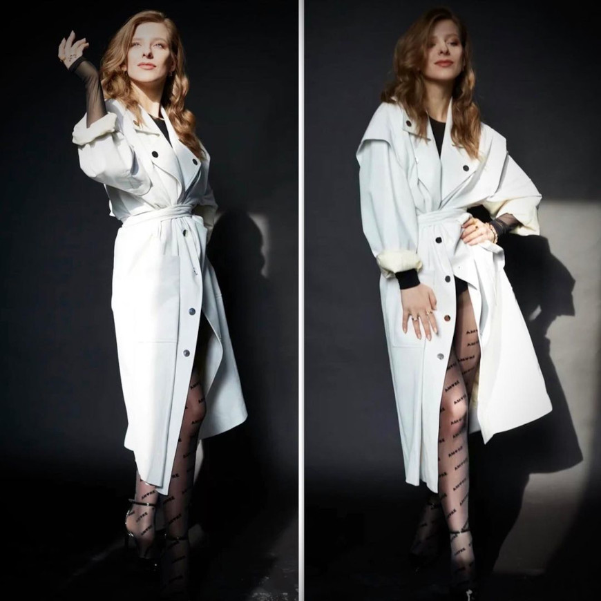 Артистка предстала перед камерой и изящном и соблазнительном образе, что не осталось без внимания поклонников. Для съемки Лиза Арзамасова примерила черное боди, а завершающим и, пожалуй, главным атрибутом фотосессии стал белый плащ, завязанный на стройной талии звезды.