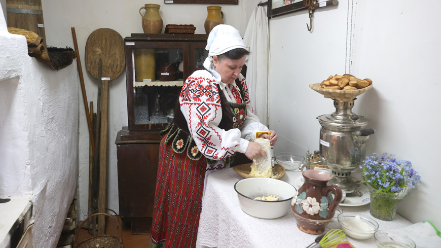 Елена Лысеня подготавливает ингредиенты для драников. Их по этому рецепту в ее семье готовили испокон веков. Его она переняла от мамы, которая, в свою очередь, получила от своей матери. Так, через поколения до наших дней дошел рецепт заварных драников, или дерунов, как часто называют их в Щучинском районе.